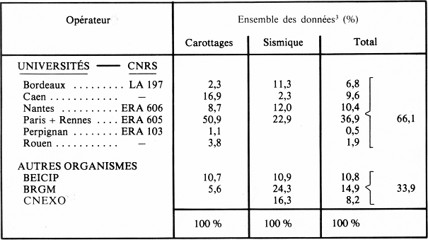Tableau 1. Données utilisées pour établir la carte géologique à 1/1 000 000 de la plate-forme continentale française.