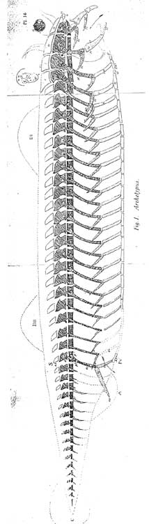 Par la suite, Richard Owen allait encore préciser ses idées dans la préface de son traité "On the Anatomy of Vertebrates", en insistant sur le fait que "le squelette archétype représente l'idée d'une série de segments essentiellement semblables se succédant les uns les autres le long de l'axe du corps; de tels segments étant composés de parties similaires en nombre et disposition"(5). Il soulignait ainsi l'importance de la notion d'"homologie sérielle".