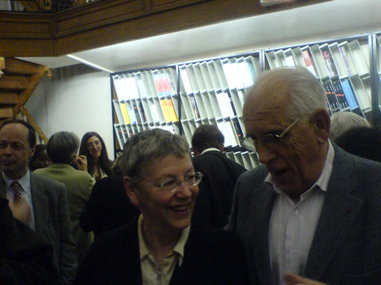 Photo prise à la bibliothèque de l'Ecole des mines de Paris le 3 novembre 2007. On distingue à sa gauche Jacques Levy, ancien directeur de l'Ecole des mines de Paris, président de la Fondation FI3M de l'ENSMP.