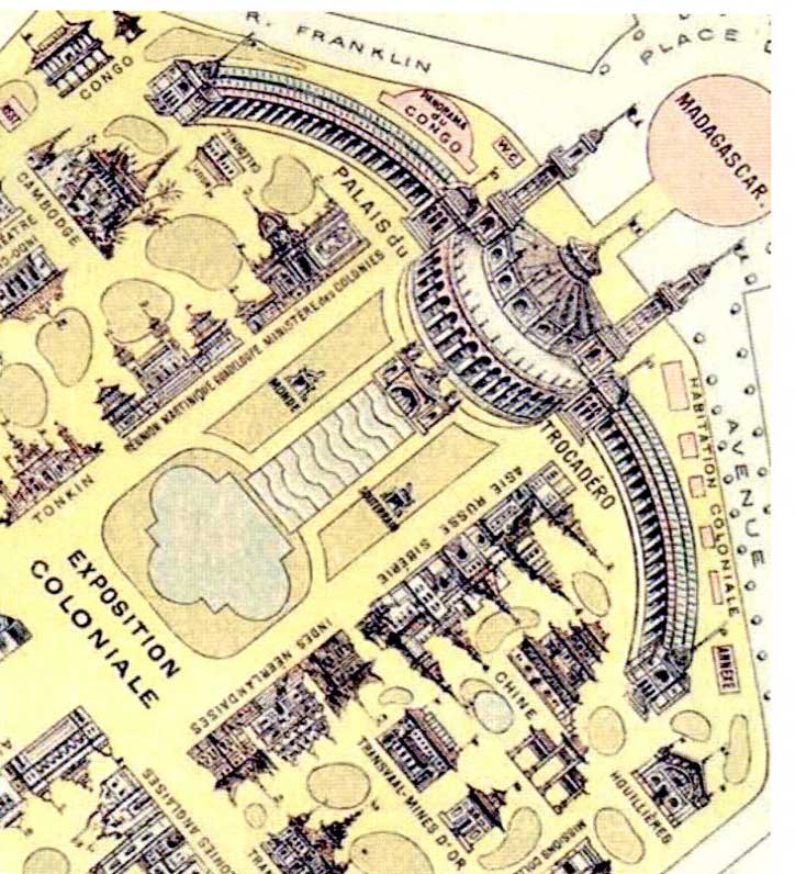 Le palais du Trocadéro, construit à l'occasion de l'EU1878 avait entraîné de gigantesques travaux de consolidation s'élevant à au moins 300 000 francs (d'après une estimation d'É. Gérards) : les murs porteurs de l'édifice ont été soutenus au niveau de la carrière (dont la hauteur atteignait jusqu'à 4 m) par des maçonneries en moellons hourdés de mortier de chaux hydraulique, et par endroit, là où le recouvrement était insuffisant, les murs de fondation ont été directement appuyés sur le sol même de la carrière. Malgré le remplacement lors de « l'Exposition Internationale des Arts et des Techniques dans la Vie moderne » de 1937 de ce bâtiment par le nouveau et actuel palais du Trocadéro, ces travaux de confortation sont toujours visibles dans l'entrelacs des galeries de servitude de l'IDC qui serpentent sous l'arrondissement.