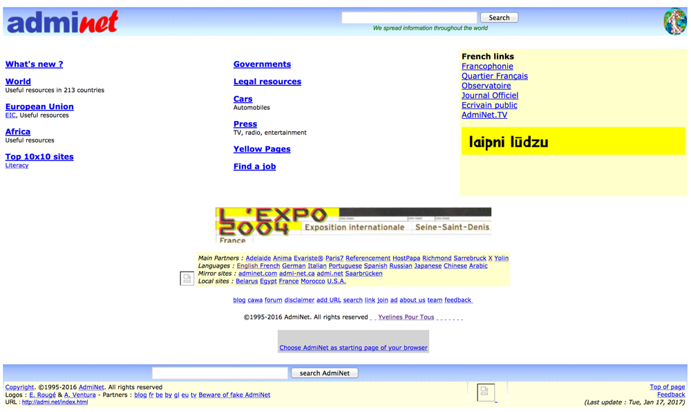Ci-contre une image de la page d'accueil d'admi.net, début 2017, peu avant le décès de son créateur.